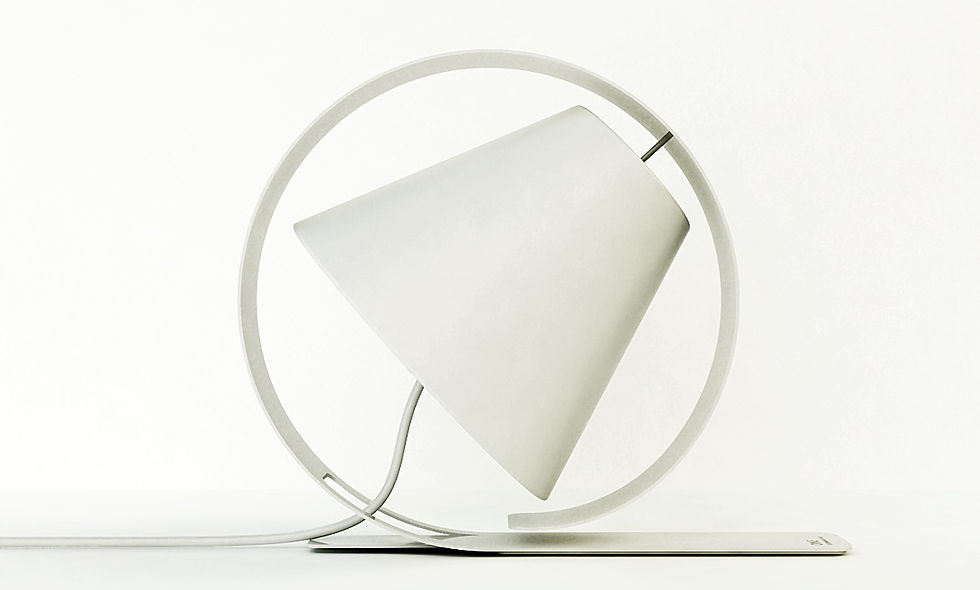 A sleek and metallic desk lamp that brings a futuristic touch to any workspace or home office.